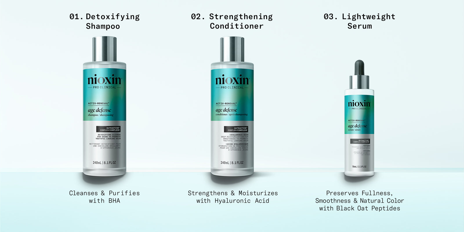 Revitalize your scalp and fight early greying hair with the Nioxin Age Defense , the ultimate anti-aging hair for maintaining your hair’s fullness, smoothness, and natural color.